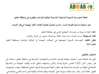 الخطة المؤسسية النسوية للاستجابة الإنسانية الوقائية للنزاعات والطوارئ في محافظة الخليل نحو استجابة إنسانية تقودها النساء، تضمن الحماية والكرامة للفئات الأكثر تهميشا في ظل الأزمات.